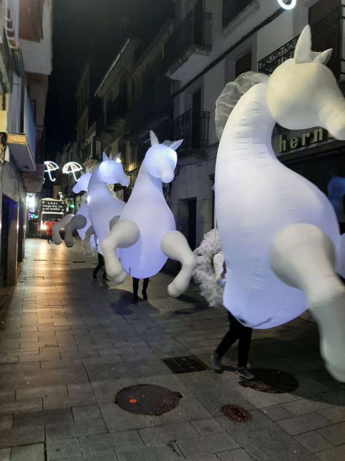 Las carrozas de Sus Majestades recorrieron un año más la ciudad de Béjar. Los caballos luminosos y danzarines fueron una de las sensaciones de la cabalgata.