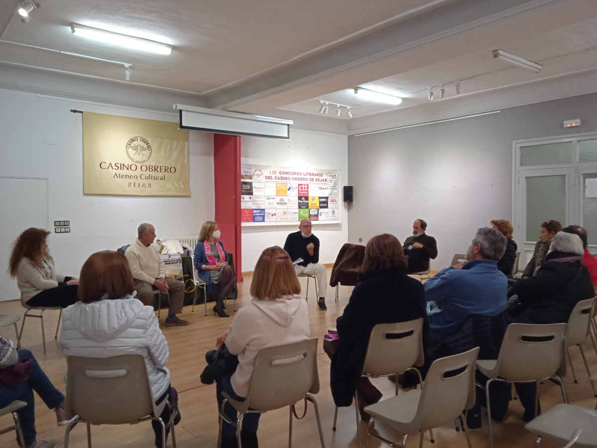 En la tarde del pasado sábado tuvo lugar en la sala de exposiciones y conferencias del Casino Obrero de Béjar la presentación del libro las "Cuevas de arriba. Más allá de las nubes" del autor Cándido Medina.
