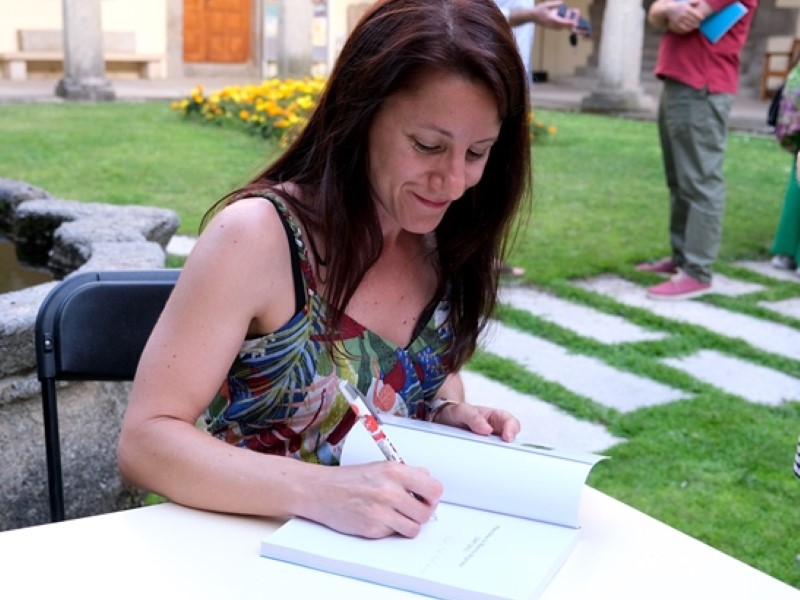Finalmente, las personas que adquirieron el libro recibieron también un número para el sorteo del original de la cubierta, que representa los Portales de Pizarro y es obra del bejarano Óscar Rivadeneyra Prieto. El cariño del público y el interés por el trabajo de Carmen Cascón quedó patente en la larga cola de asistentes para que la autora les firmase el libro. Además, el acto ha facilitado el reencuentro con muchos paisanos que se encuentran pasando la época estival en Béjar.