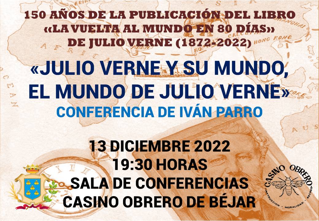 Este año 2022 se cumplen 150 años de la publicación por entregas en el diario Le Temps del que luego se convertiría en el texto de Julio Verne “La vuelta al mundo en 80 días”, un relato de aventuras y acción que desde muy joven cautivó a Iván Parro, escritor y sociólogo afincado en Béjar, miembro en activo de la Sociedad Hispánica Jules Verne y gran admirador de este escritor, considerado por muchos como uno de los padres de la ciencia-ficción moderna. Es por ese motivo que Parro impartirá la conferencia titulada “Julio Verne y su mundo, el mundo de Julio Verne” el próximo martes día 13 de diciembre a partir de las 19:30 horas en la sala de exposiciones y conferencias del Ateneo Cultural Casino Obrero de Béjar, del cual es además su actual presidente.