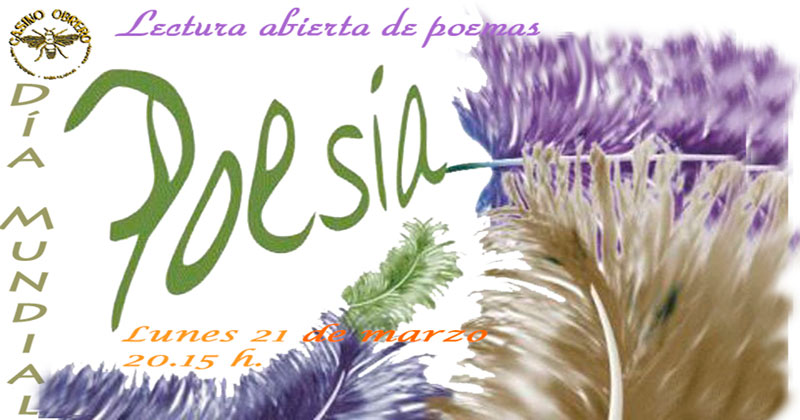 Con motivo del Día Mundial de la Poesía, que se celebra el lunes día 21 de marzo, el Casino Obrero de Béjar programa una actividad para conmemorar ese día.
