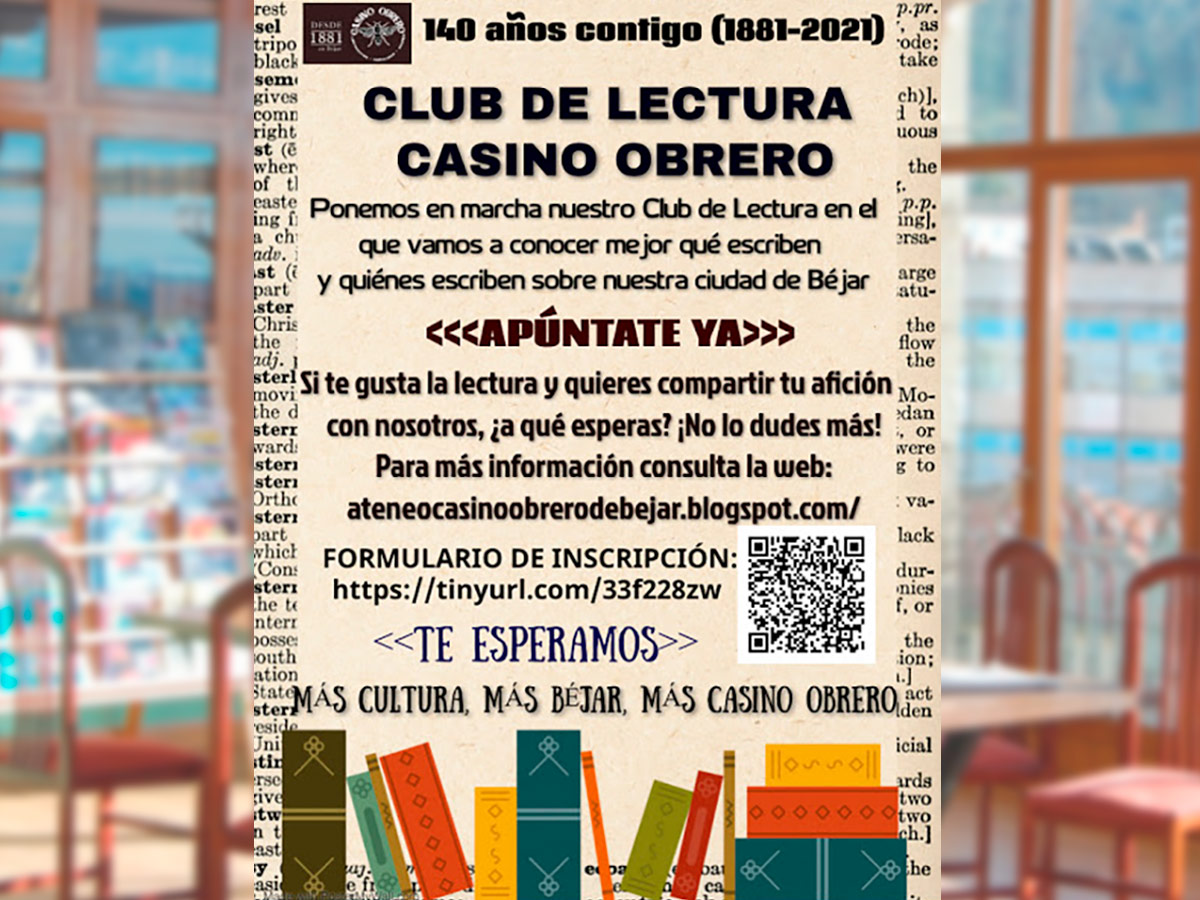 El Casino Obrero de Béjar va a iniciar un Club de Lectura durante el próximo mes de abril para cualquier persona amante de la literatura y de los libros, tanto para los socios como para los no socios, por lo que cualquier persona puede apuntarse.