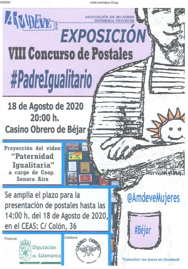 El próximo día 18 de agosto de 2020 a las 20:00 horas tendrá lugar en la sala de exposiciones y conferencias del ateneo cultural, Casino Obrero de Béjar, la actividad de AMDEVE con motivo del día del Padre Igualitario aplazada en su momento a causa del estado de alarma motivado por el coronavirus.