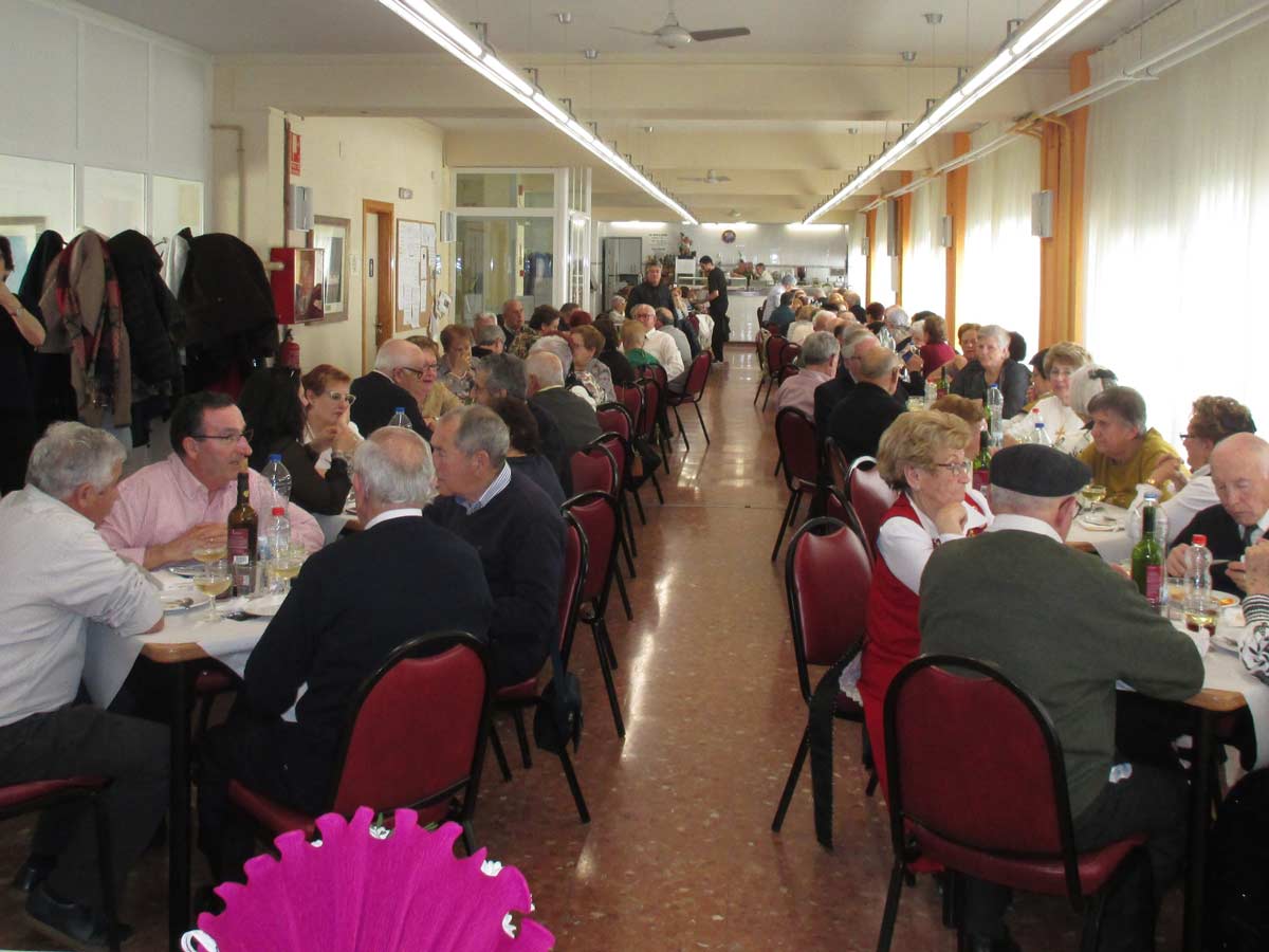 La comida reunió a ciento diez personas, mujeres y hombres. Al terminar, el concejal de servicios sociales Antonio Cámara impuso a Carmen Hernández la ya tradicional insignia con forma de abeja