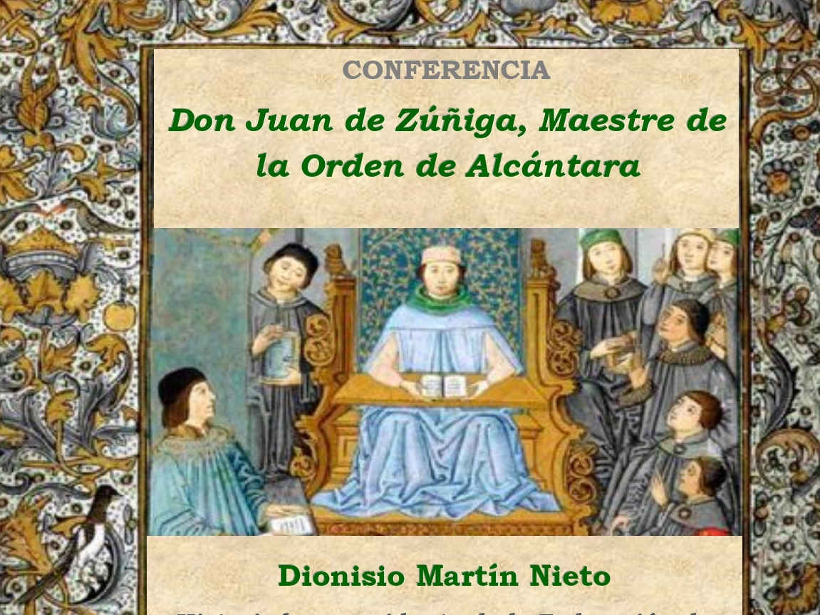 La charla, "Don Juan de Zúñiga, maestre de la Orden de Alcántara”, será el 7 de agosto en el CMC San Francisco