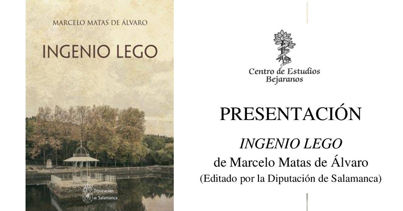 Aunque el Centro de Estudios Bejaranos no es el editor de esta publicación, sino la Diputación de Salamanca, el CEB ha creído necesaria la presentación de este libro de relatos en Béjar dado que su autor es un bejarano afincado en Asturias. Presentado en Salamanca en 2016, Ingenio Lego irradia reminiscencias de Béjar en algunos de sus capítulos e incluso en su portada, dedicada al estanque de El Bosque y su templete, reconocible para cualquier oriundo de la zona.