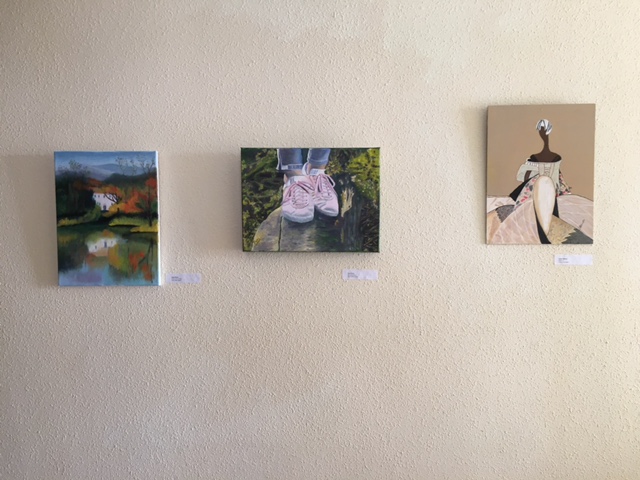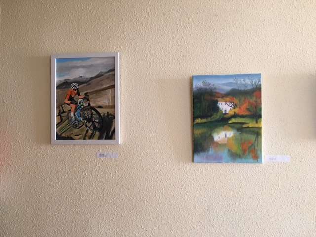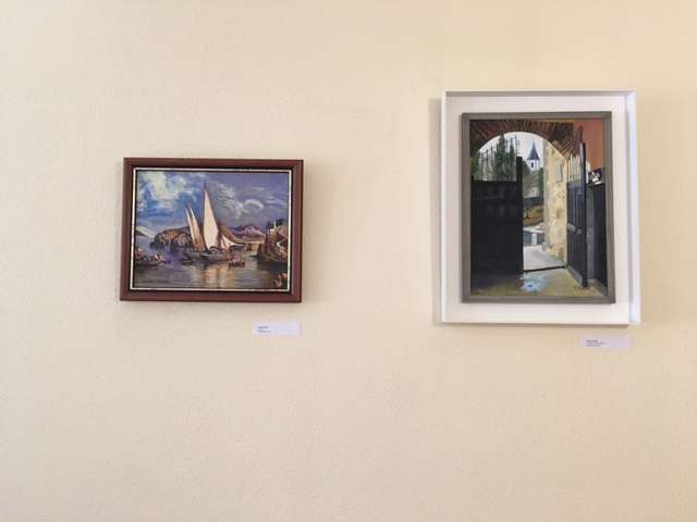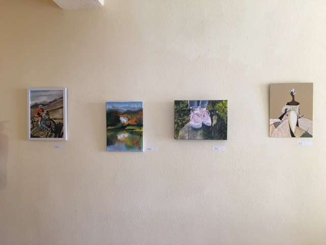 Cuadros de los alumnos del curso de pintura expuestos en el Centro de Mayores de Béjar