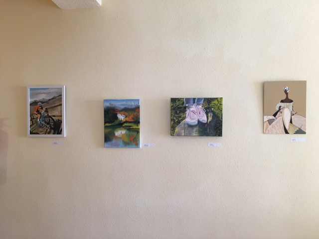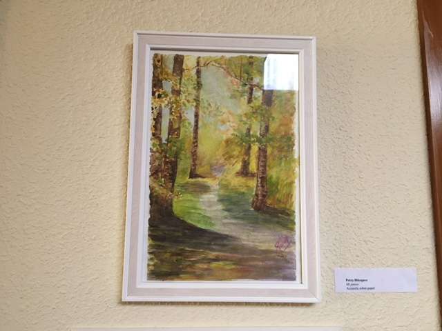 Los alumnos del curso de pintura del Centro de Día de Béjar exponen sus trabajos en las paredes de las dependencias.
