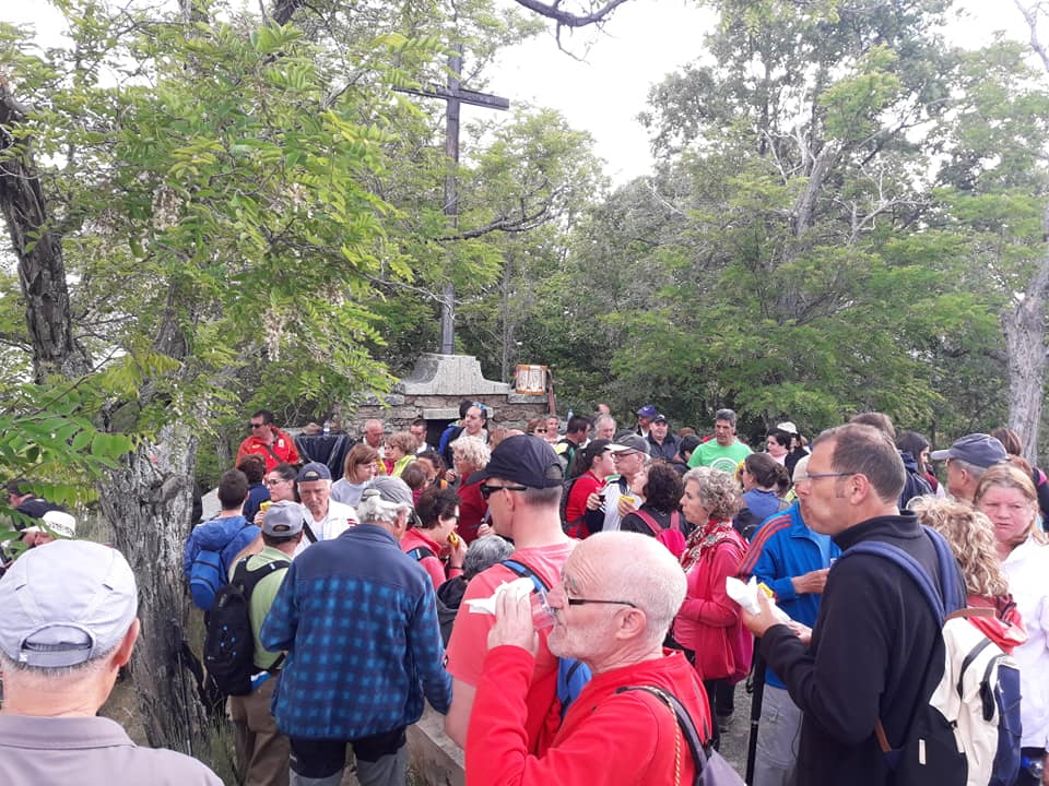 El clima de la jornada se ha caracterizado por lo desapacible. Con fuertes rachas de viento y nubes y claros que si bien podían hacer temer por la organización, han permitido que una jornada, que se prevé calurosa permita hacer la romería a los participantes sin excesivo calor. La marcha se inició a las 9 de la mañana, para ir recogiendo a los romeros que se suman, principalmente en La Corredera, para, desde allí iniciar la subida con las tradicionales paradas en las cruces que jalonan el camino. En cada parada trago de vino y oración que manda la tradición, evitando tirar cohetes por el alto riesgo de incendio. Al mediodía se produjo la llegad a la Cruz del Peladillo donde el Abad, este año Javier Garrido Novoa, invita a los participantes a un tentempié a base de bocadillos que permiten culminar la marcha hasta la cercana Peña. En concreto se repartieron 220 bocaillos entre los asistentes.
