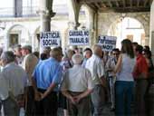En la mañana de hoy a las puertas del Ayuntamiento bejarano cerca de un centenar de personas con pancartas en las que se podía leer mensajes como "Justicia Social", "Caridad, No. Trabajo Si" o "Prepotencia ¡¡NO!!", han acudido a la concentración de apoyo a las personas en paro no seleccionadas para los contratos temporales subvencionados por la Junta de Castilla y León, acto que habia sido convocado por los concejales del PSOE y apoyado por los sindicatos UGT y CGT.