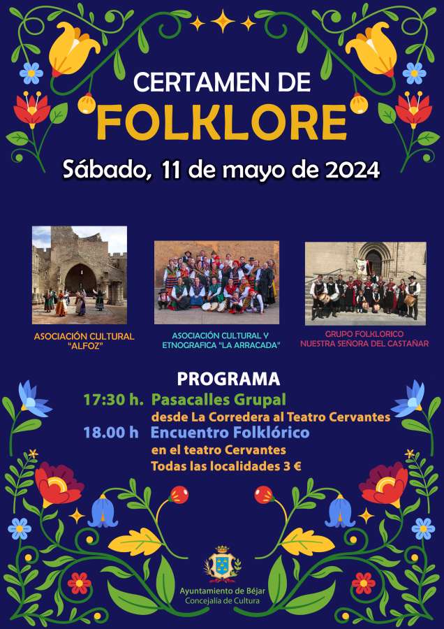 Este sábado 11 de mayo, el Teatro Cervantes de Béjar acogerá el Certamen de Folklore, un evento que promete ser una celebración de la tradición y la música con la participación de tres destacados grupos.