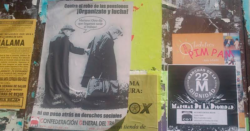 CGT Béjar ha realizado una pegada de carteles "Contra el robo de las pensiones" y denunciando los recortes que se han realizado, "y los que se preven". El sindicado también ha repartido por la ciudad dípticos informativos sobre la ley de pensiones y los recortes.