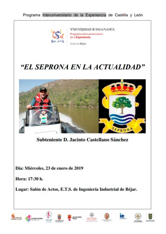 Hoy miércoles 23 de enero a las 17:30 h. tendrá lugar una charla sobre "El SEPRONA en la actualidad" . La conferencia, organizada desde la Universidad de la Experiencia, será desarrollada por el bejarano Subteniente Jacinto Castellano.