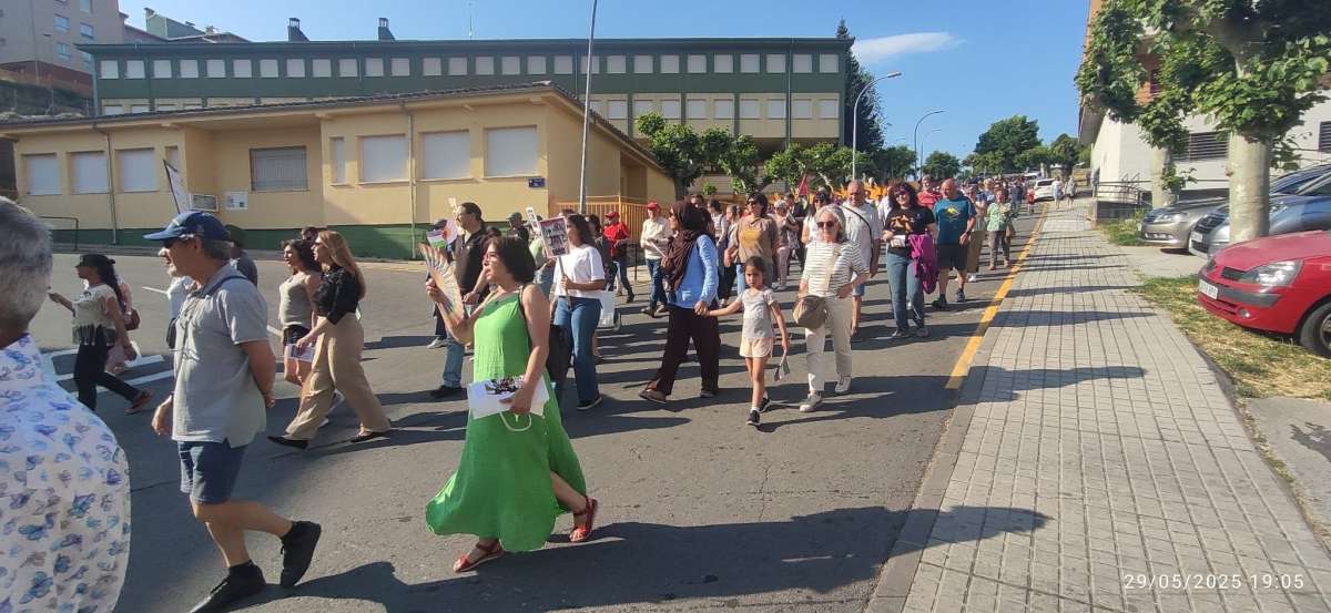 La marcha, convocada el 29 de mayo, recorrió las calles de Béjar desde el cementerio municipal hasta La Corredera en protesta por el genocidio en Palestina.