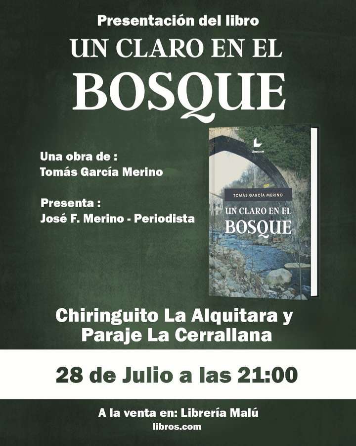 "Un claro en el Bosque", primera novela de Tomás García Merino, está ambientada en Béjar y se presentará hoy miércoles a las 21 horas el libro en el chiringuito de las instalaciones de La Cerrallana.