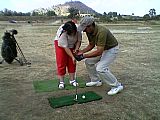 Las monitoras del programa y una docena de participantes pudieron conocer como funciona el campo de golf, en la actualidad en precario debido a las obras que se están realizando en la zona, y los primeros rudimentos de esta práctica deportiva. Dos socios del club deportivo bejarano acompañaron a los participantes Ociodiscap a lo largo de un recorrido por algunos de los hoyos del campo. Los participantes en el programa practicaron algunos golpes acompañados de los socios que habitualmente practican este deporte.