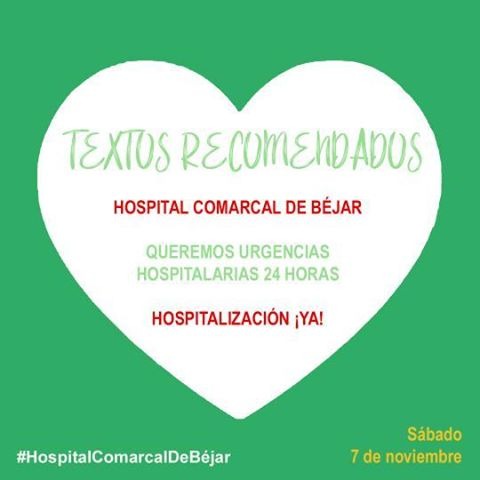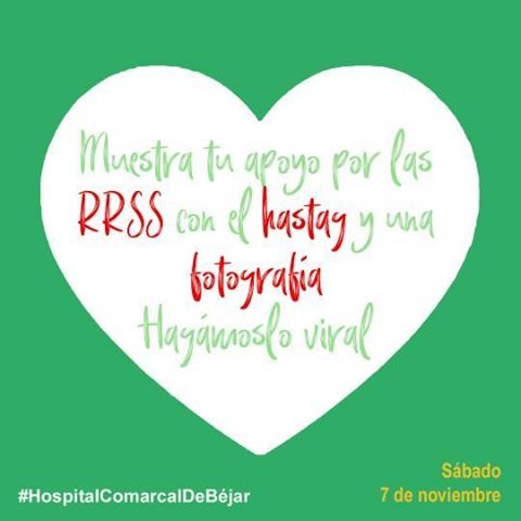 El colectivo insta a subir mañana, día 7 de noviembre, a las redes sociales una fotografía con un cartel en apoyo al hospital de Béjar con el hashtag #HospitalComarcalDeBejar
