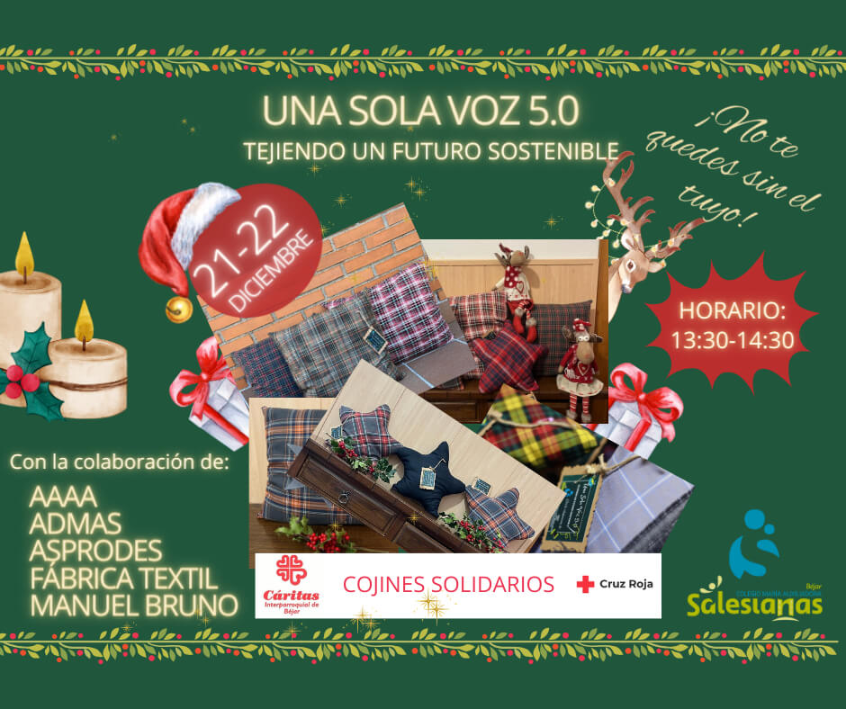 Invitamos a toda la comunidad de Béjar a participar en este evento solidario que no solo representa la culminación de los esfuerzos de los estudiantes y colaboradores, sino también una oportunidad para contribuir activamente a la construcción de un mundo más sostenible. El mercadillo solidario se llevará a cabo en el Colegio María Auxiliadora los días 20 y 21 de diciembre en horario de 13:30 a 14:30 h, donde se podrán adquirir estos cojines únicos con un propósito solidario.
