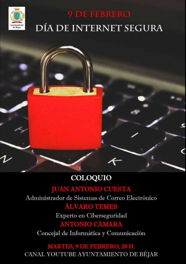 Con motivo de la celebración del Día Internacional de la Internet Segura, que tendrá lugar el este martes 9 de febrero, el Ayuntamiento de Béjar ha organizado un coloquio, que se retransmitirá a través del canal de YouTube del Ayuntamiento de Béjar a las ocho de la tarde.