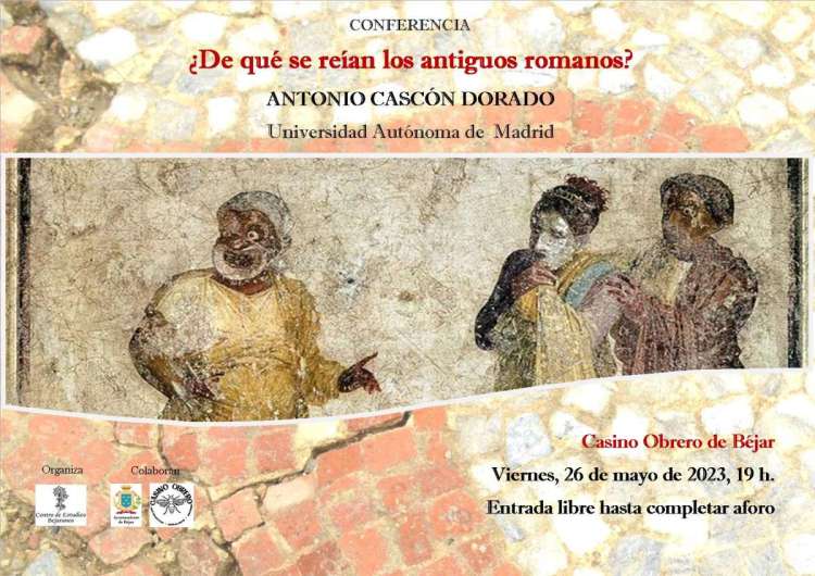 El viernes 26 de mayo el profesor titular de Filología Latina de la Universidad Autónoma de Madrid, el bejarano Antonio Cascón Dorado, charlará sobre “¿De qué se reían los antiguos romanos?”. Será en el Casino Obrero de Béjar a las 19 horas en una conferencia organizada por el Centro de Estudios Bejaranos.