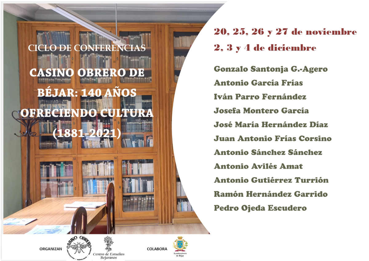 Programa Conferencias “Casino Obrero de Béjar: 140 años ofreciendo cultura (1881-2021)”