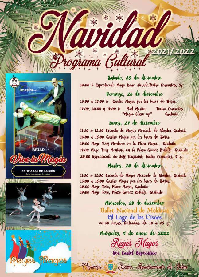 Además de la iluminación especial para las fiestas, las atracciones del parque de nieve de la Corredera, las actuaciones programadas en el Teatro Cervantes o la visita de los Reyes Magos, se han organizado otras actividades en Béjar, ‘ConMarca de Ilusión’, un programa que incluye las actuaciones de magos de procedencia nacional e internacional en las calles, los bares y el Teatro Cervantes.