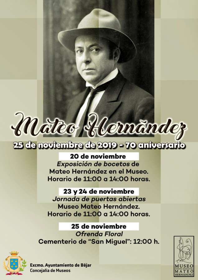 Desde el jueves, 20 de noviembre, hasta el domingo, 24 de noviembre, se podrá visitar una pequeña exposición de bocetos de Mateo Hernández en el Museo en horario de 11:00 a 14:00 horas.