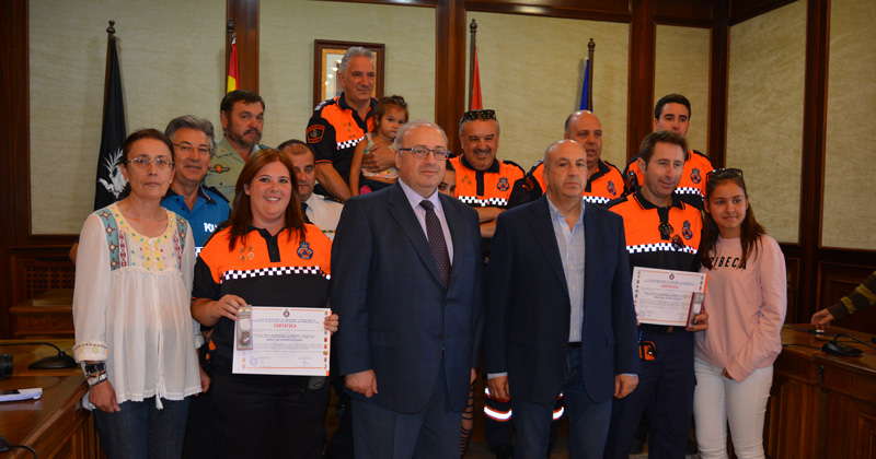 El Ayuntamiento premia de esta forma el trabajo, la dedicación y el esfuerzo realizado por Cristina Len Nieto y Manuel Sánchez Domínguez, miembros de la agrupación de voluntarios desde el año 2009. Los galardonados fueron acompañados por el capitán de la Guardia Civil, el jefe accidental de la comisaría de Policía Nacional y por el subinspector jefe de la Policía Local, además de sus compañeros de Protección Civil.
