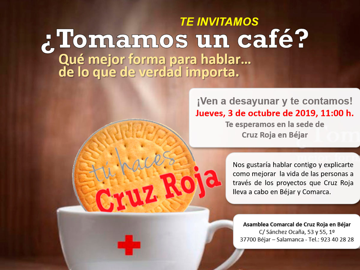 Cruz Roja Béjar organiza una "actividad especial" en la nueva sede de Cruz Roja en Béjar en la calle Mayor. La organización va a invitar a todas las personas que acudan a un café. El objetivo, tal y como dan a conocer en la promoción de la campaña, es acercar y dar a conocer las actividades que se organizan desde el colectivo.