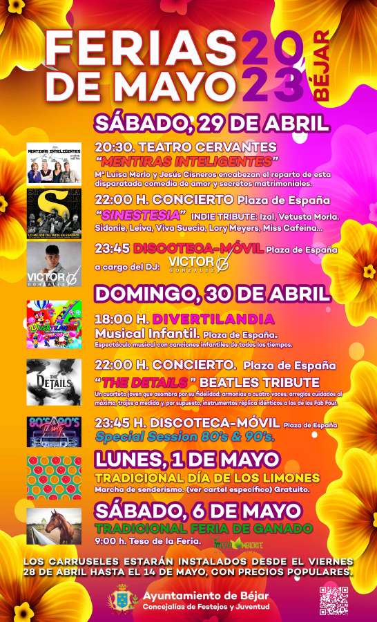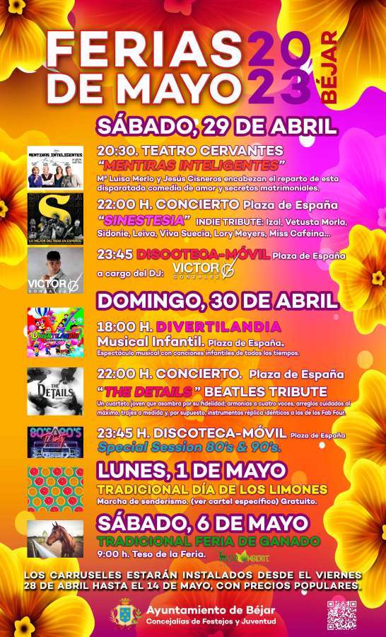 El Ayuntamiento de Béjar ha dado a conocer la programación de las Ferias de Mayo de Béjar que se celebrarán los días 29, 30 de abril, 1 y 6 de mayo.
