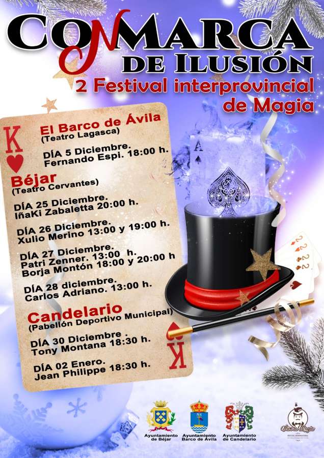 El miércoles 30 de diciembre en Candelario en el Pabellón de deportes se podrá ver a las 18:30 horas a Tony Montana con su espectáculo, y para terminar el festival el día 2 de diciembre a las 18:30 horas se podrá disfrutar de la magia de Jean Philippe.