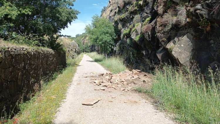 El camino de la Vía Verde, a su paso por Béjar, ha sufrido un desprendimiento de rocas y tierra que, sin que haya causado ningún tipo de daño, constituye un elemento que dificulta el tránsito por la via y alerta de la posibilidad de nuevos desprendimientos que podrían producirse al paso de viandantes y de los numerosos ciclistas que transitan a diario por este camino.