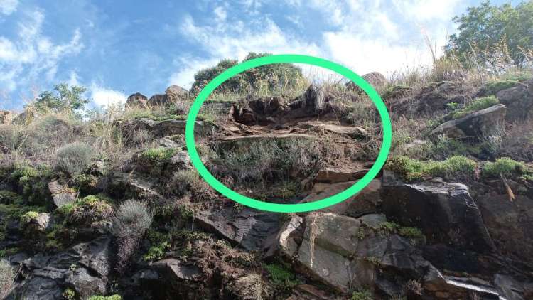 Las lluvias copiosas de los últimos días han sido, con toda probabilidad la causa del desprendimiento del material que forma parte de los laterales de la antigua vía de ferrocarril.