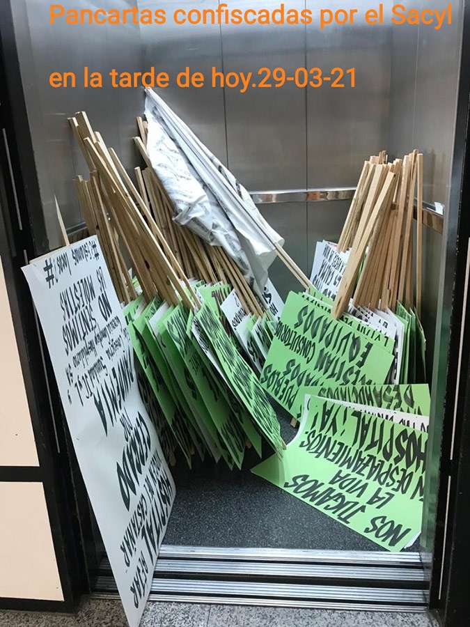La Plataforma en Defensa de la Sanidad pública en Béjar y Comarca denuncia que en la jornada de ayer y por orden de la Dirección Médica del Complejo Hospitalario de Salamanca, se han confiscado 80 pancartas que estaban listas para ser utilizadas en la concentración de este miércoles, 31 de marzo.