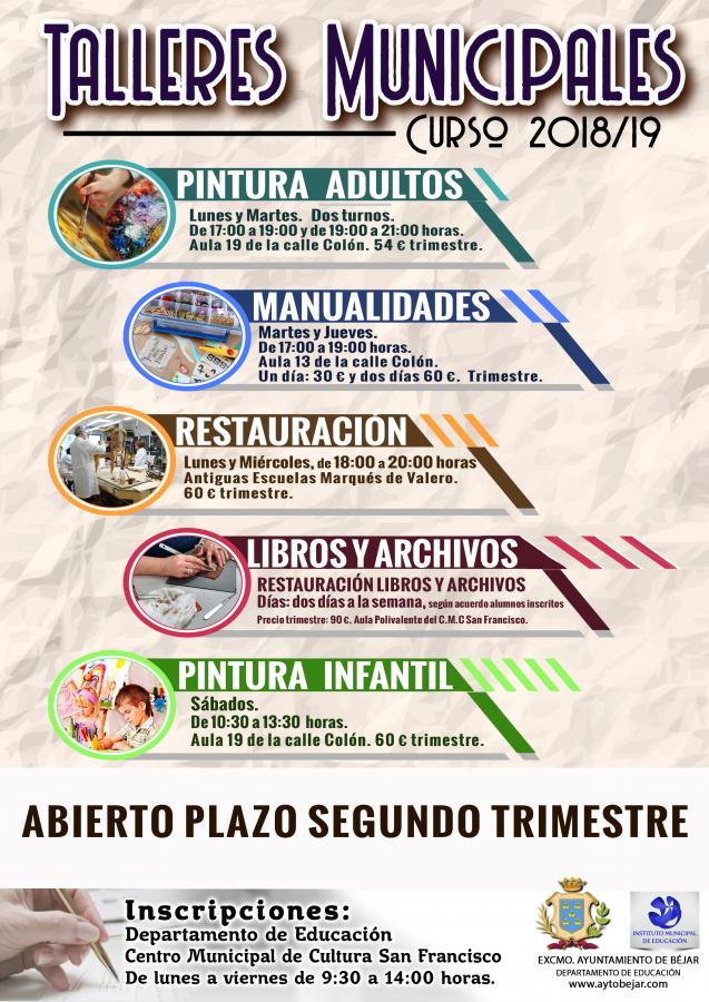 Las inscripciones a los talleres municipales se realizan en el departamento de Educación sito en el Centro Municipal de Cultura de “San Francisco”, de lunes a viernes de 9:30 a 14.00 horas.