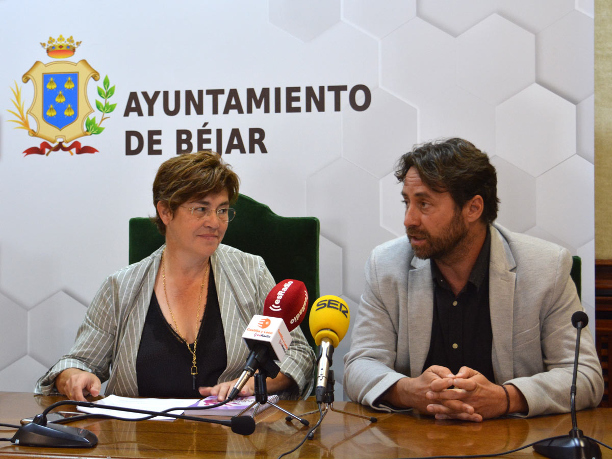 La alcaldesa del Ayuntamiento de Béjar, Elena Martín Vázquez, junto al concejal del Área de Igualdad y Servicios Sociales, Antonio Cámara, dio respuesta al balance realizado por la exconcejala del Área de Sanidad y Servicios Sociales.