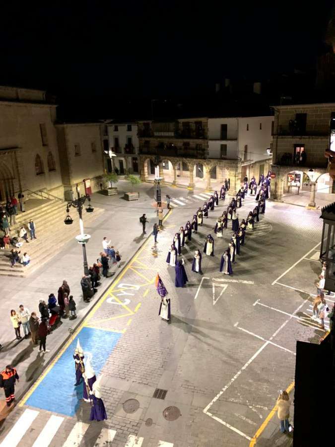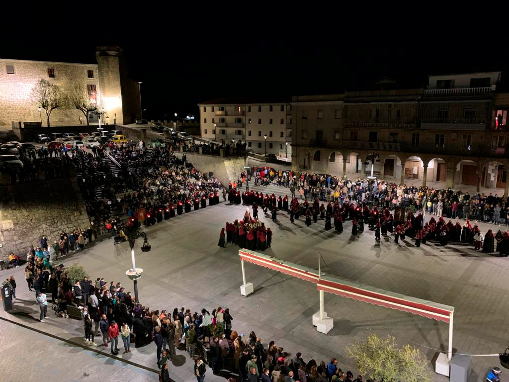 Pasadas las 12 de la noche, la procesión tuvo su punto álgido, el encuentro entre ambas imágenes ante la atenta mirada de los cofrades de las tres hermandades bejaranas y los espectadores congregados.