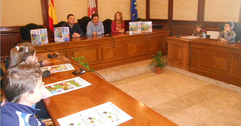 El concejal de Medio Ambiente, Pedro Manuel Esteban, Purificación Pozo, y el responsable de la empresa AQUIALIA, Santiago Fraile, entregaron los premios del XII Concurso Internacional de Dibujo Infantil