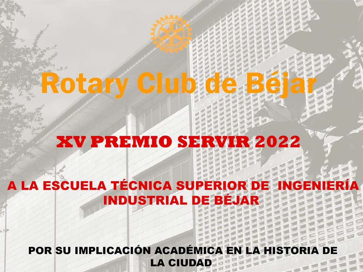 Tres años después, el Rotary Club de Béjar ha concedido su anual Premio "Servir", en esta ocasión a la Escuela Técnica Superior de Ingeniería Industrial. Este premio reconoce los méritos de personas o entidades dentro de su comunidad.