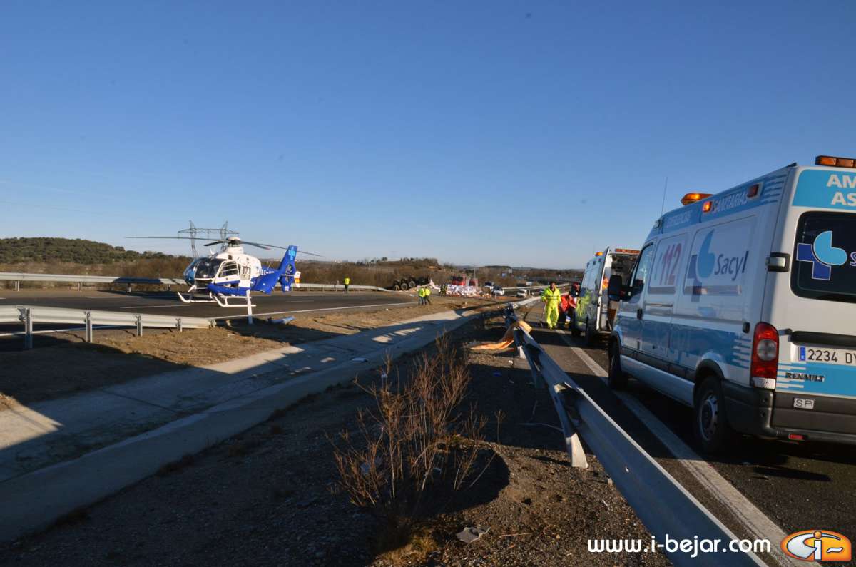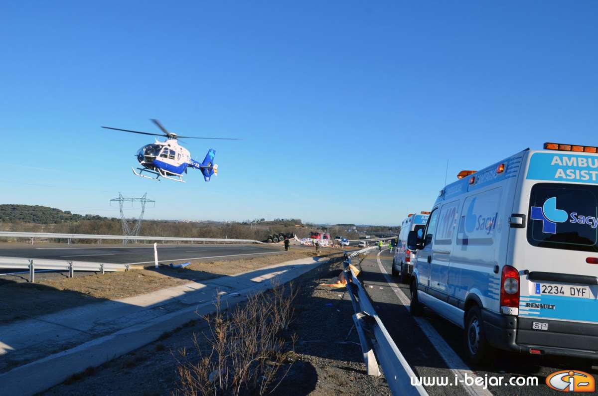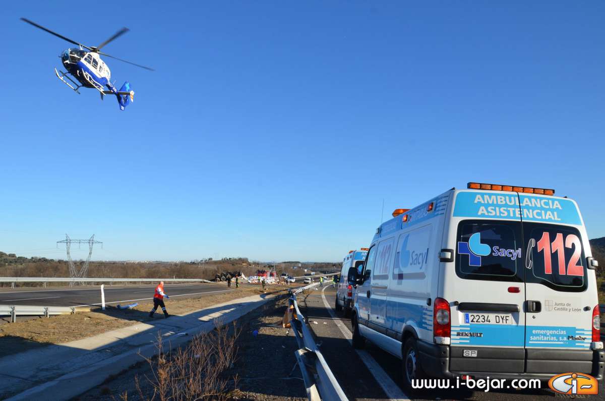 En el accidente intervinieron numerosos efectivos de la Guardia Civil, para regular el tráfico en los dos sentidos, cortado únicamente en algunos momentos; los efectivos del servicio de emergencias con dos ambulancias y un helicóptero, y los bomberos del Parque de Béjar.