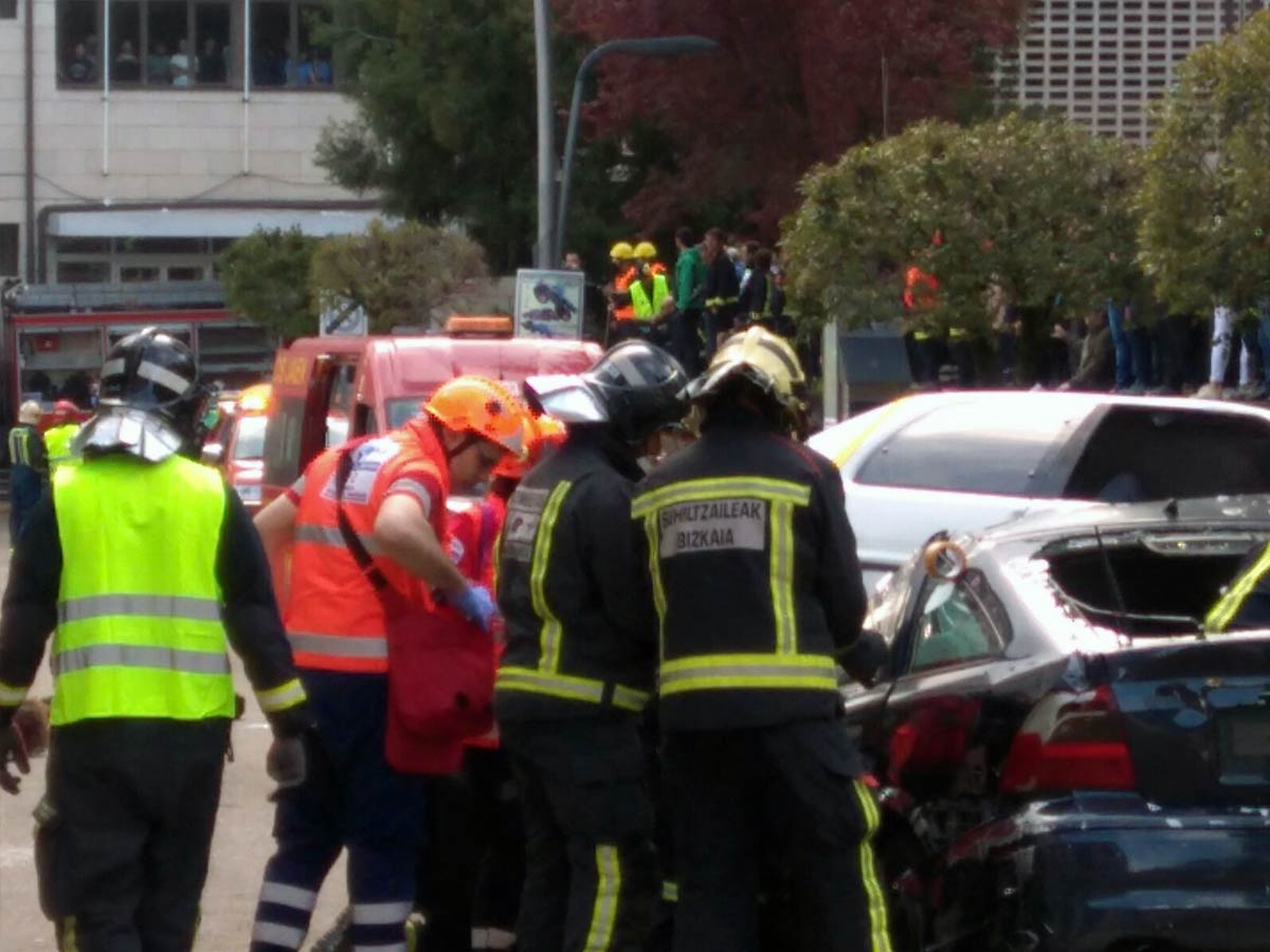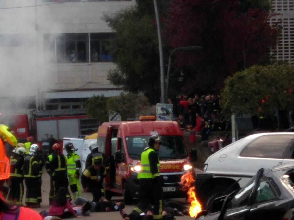Efectivos de bomberos, policía, equipos sanitarios y un gran número de figurantes están participando en este espectacular simulacro de atentado terrorista que se desarrolla en la plaza de Santa Teresa desde las diez de la mañana.