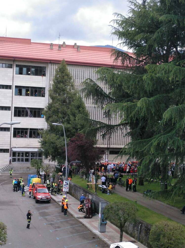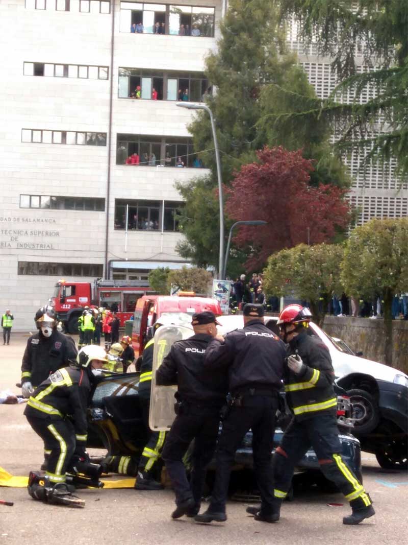 Durante el simulacro hemos podido ver cómo era evacuado el Centro Integrado de FP Ciudad de Béjar bajo un intenso humo, explosiones de vehículos, amenaza terrorista en el interior de la Escuela de Ingenieros, rescate de heridos en el interior de un vehículo, rescate con camión grúa, ...