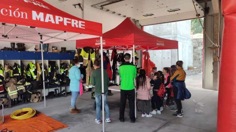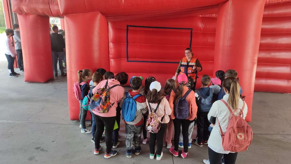 Los escolares pudieron comprobar en vivo cuales son las adversas condiciones a las que se enfrentan los bomberos cuando tienen que extinguir incendios en edificios. Por medio de un hinchable que simulaba un edificio en llamas, los menores accedieron, no solo para comprobar las condiciones en las que trabajan los efectivos, sino también para conocer algunas de las condiciones en las que se propaga un fuego y cómo actuar para ponerse a salvo.