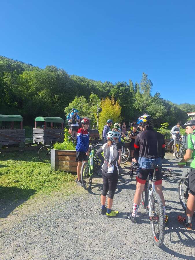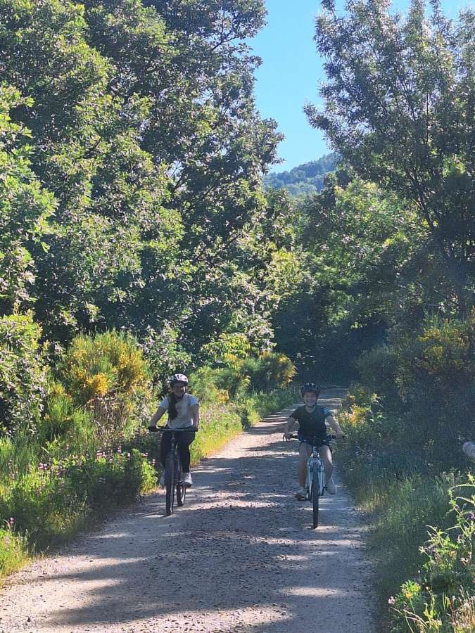 La actividad arrancó a las 9:15 horas desde el Parque de La Corredera, con la salida de los participantes en bicicleta, acompañados y escoltados por la Policía Local de Béjar, a quienes el centro agradeció especialmente su colaboración. La ruta cicloturista siguió la Vía Verde de la Ruta de la Plata, hasta llegar a la antigua estación de tren de Baños de Montemayor.