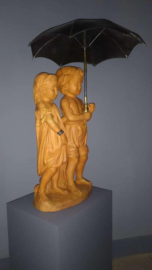 Muñoz Domínguez, gran conocedor de El Bosque de Béjar, recogía hace unos meses en su artículo "El Bosque de Béjar y su jardín amenazado IV", la iconografía de Paul y Virginie bajo el paraguas. En su artículo nos explica que la figura evoca un pasaje de la etapa infantil de los protagonistas que fue interpretado con más libertad que exactitud, pues en el texto sólo se cuenta cómo los dos niños se vieron sorprendidos por una tormenta y la forma en que trataron de guarecerse con lo que pudieron; el narrador detalla que Virginie «sostenía a Paul del brazo, envuelto casi por completo en el mismo manto, ambos riéndose al cobijarse juntos bajo un paraguas de su invención». Debido quizá a una mala traducción al inglés, el tema derivó en versiones gráficas y fotográficas en las que el término imaginario de la comparación se hacía presente como verdadero paraguas.