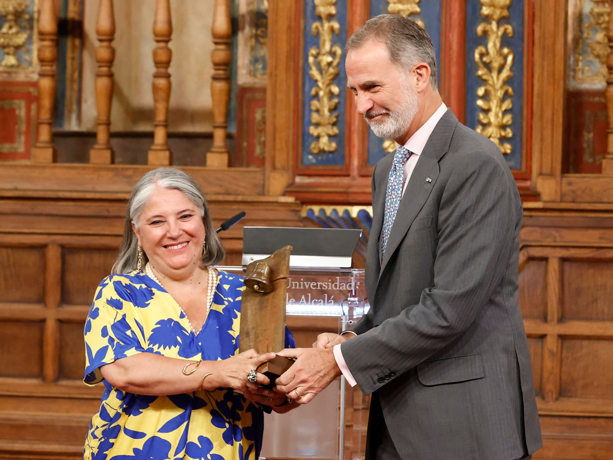 Felipe VI entregó en la mañana de ayer el Galardón Camino Real del Instituto Franklin-UAH a la viróloga bejarana Ana Fernández-Sesma en una ceremonia celebrada en el Paraninfo de la Universidad de Alcalá. Con este reconocimiento, el Consejo Asesor, tal y como ha enunciado su presidente Antonio Vázquez, ha querido destacar la trayectoria profesional de la galardonada en el Monte Sinaí de Nueva York, que “la han convertido en referencia científica mundial en el ámbito de la virología e inmunología”. Además, Antonio Vázquez destacó el trabajo de la viróloga como “no solo imprescindible, sino vital para la humanidad”.