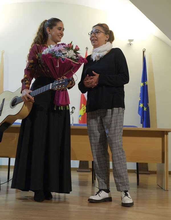 No era la primera vez que la guitarrista oriolana Rebeca Gea Martínez tocaba para el público bejarano. En septiembre de 2018, en ocasión de los 150 años de la Revolución Gloriosa, ante un salón de actos del convento San Francisco lleno hasta la bandera, deleitó al público con un repertorio musical acorde con la conmemoración. Ayer lo volvió a hacer: asombrarnos con la música que interpreta y cuyos sonidos brotan de una guitarra fabricada por su padre y hacia la que demuestra un cariño especial.
