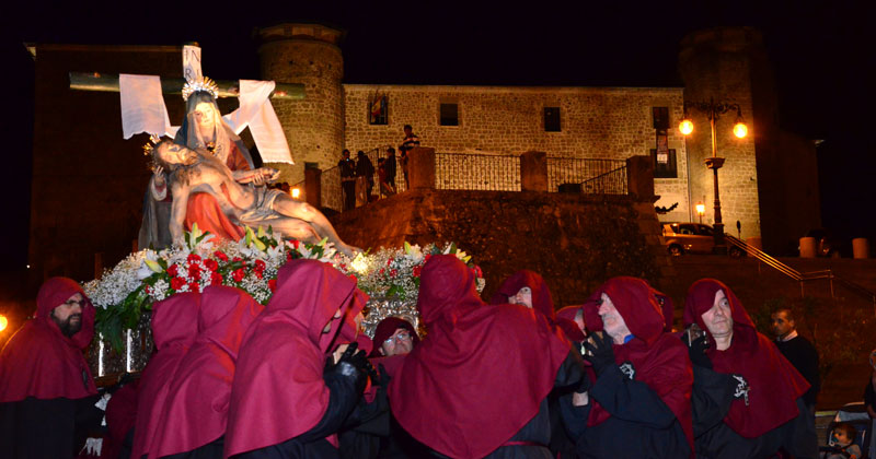 Pasadas las 21.30 horas se inició la procesión de Nuestra Señora de las Angustias, al son solemne de los tambores.