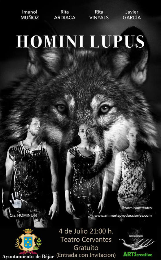 Mañana jueves, 4 de julio, a las 21:00 horas, será el estreno del novedoso espectáculo “Homini Lupus” en el Teatro Cervantes de Béjar. La entrada es gratuita, con invitación, que se entregaran en la taquilla del Teatro Cervantes durante la jornada de hoy en horario de 18 a 20h hasta finalización de las mismas, no se podrá entrar al teatro sin invitación, debido al aforo máximo.