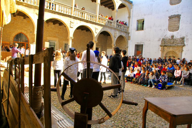 Alumnos de los centros educativos de Béjar visitaron el palacio ducal para asistir a la recreación histórica de la vuelta al mundo